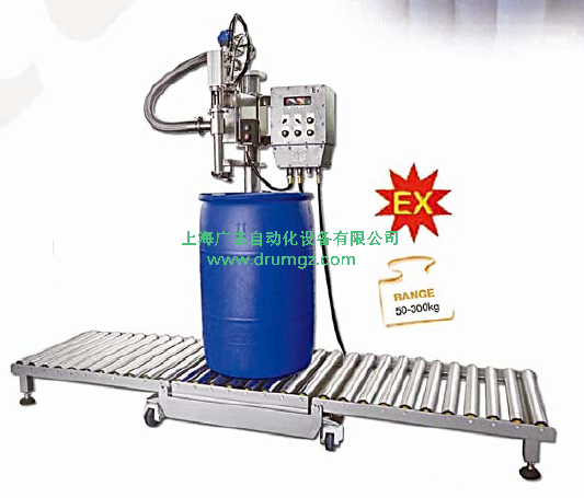 甘油防爆自动灌装机,本机广泛适用于各种有粘,无粘,有一定腐蚀和无腐蚀性液体的称重定量灌装与检重。本机型采用快,低速双速灌装,具有定量精度高,定量值任意设定,等优点.本机具有次数和累计重量调显功能.是文明生产和国家明令规定淘汰杠杆称后,称重灌装一体化的理想设备.