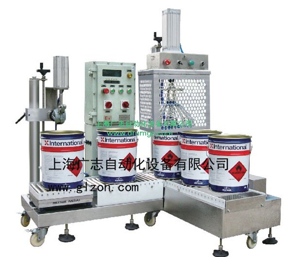 油墨半自动灌装机,采用桶口上灌装方式,适用于油墨、乳胶漆、乳液、胶黏剂类无泡沫粘稠物料的灌装。设计独特的灌装头装置易于操作,灌注快速、精确;并且最大限度地保证灌注完毕时残液的滴漏。操作时,操作者仅需简单地将桶口对准灌装头正下方,按下的[启动]按钮,系统会自动将空桶自动去皮。然后打开灌装头阀门,精确地双速灌装;灌装结束,灌装头阀门自动关闭,人工将桶推出磅台上盖压盖即告完成。
