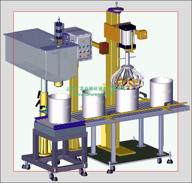 操作步骤:人工放桶至灌装头下方,启动灌装信号,自动开启大小给料阀门,到设定工作点1关闭快给料阀门;到设定工作点2关闭慢给给料阀门;人工加盖并移桶至压盖工位(有辅助定位装);启动压盖信号,压盖结束人工移走桶,并入库。